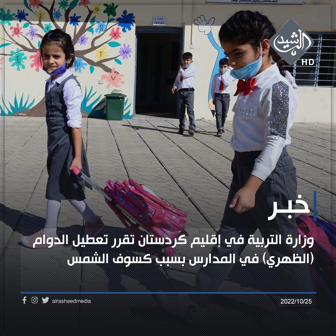 وزارة التربية في إقليم كردستان تقرر تعطيل الدوام (الظهري) في المدارس بسبب كسوف الشمس