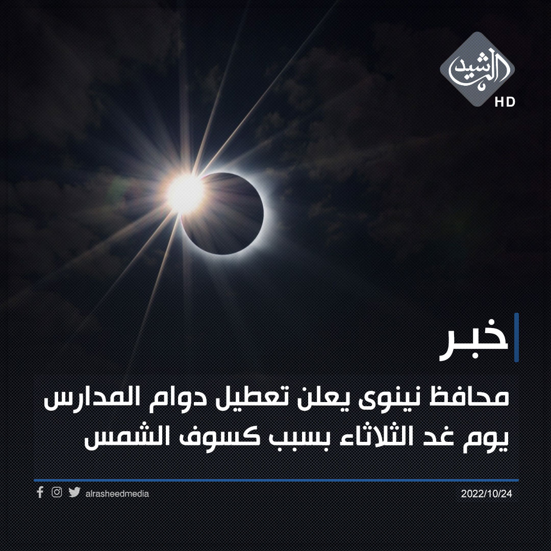محافظ نينوى يعلن تعطيل دوام المدارس فقط يوم غد الثلاثاء بسبب كسوف الشمس