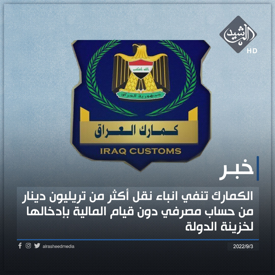 الكمارك تنفي انباء نقل أكثر من تريليون دينار من حساب مصرفي دون قيام المالية بإدخالها لخزينة الدولة