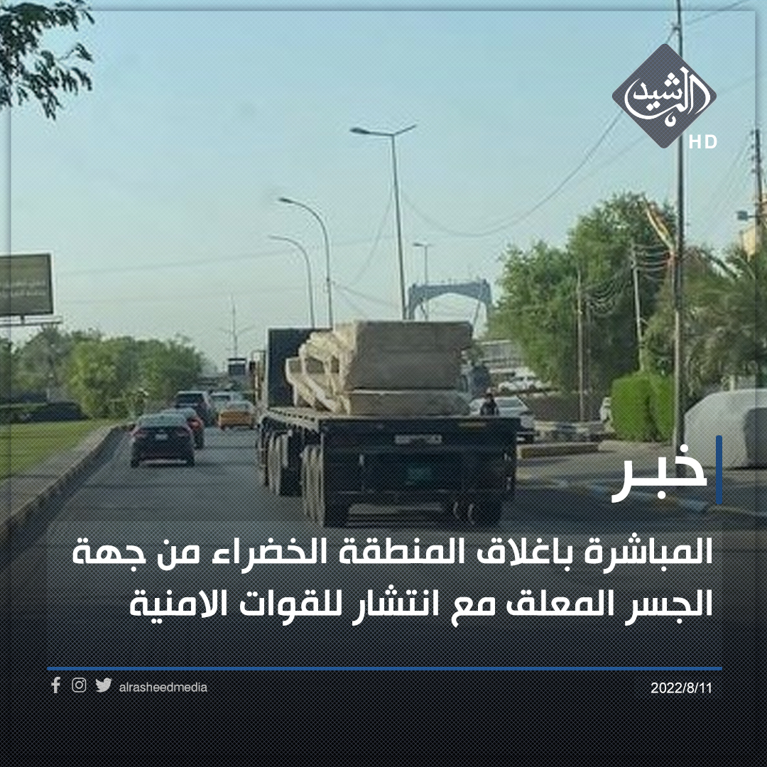 المباشرة باغلاق المنطقة الخضراء من جهة الجسر المعلق مع انتشار للقوات الامنية
