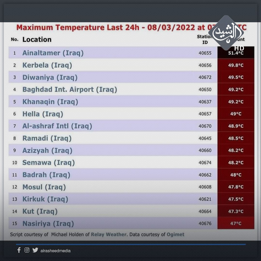 بالجدول.. 15 مدينة عراقية تحتل قائمة أعلى المدن حرارة في العالم