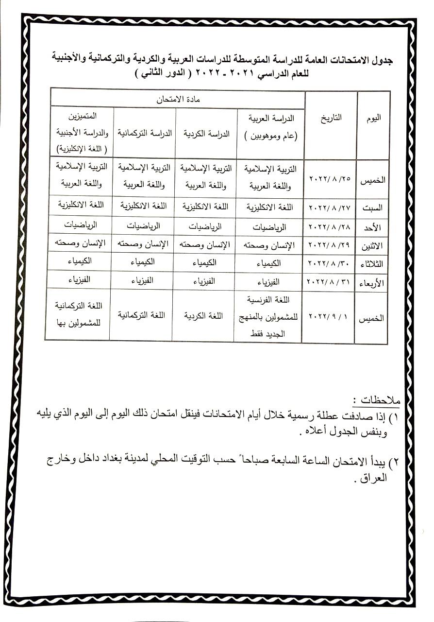 التربية تقرر شمول طلبة السادس الابتدائي والثالث المتوسط الراسبين بـ 3 دروس بامتحان الدور الثاني