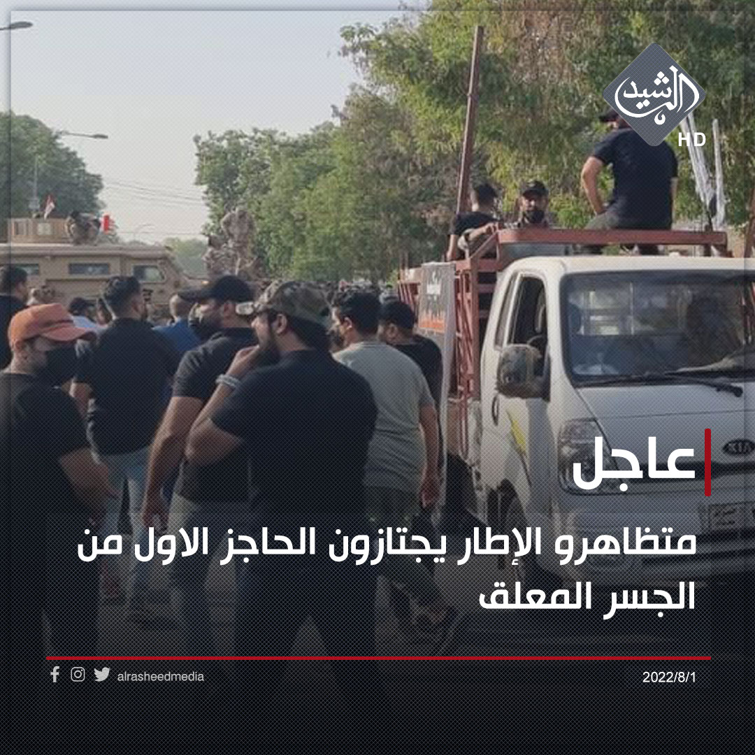 متظاهرو الإطار يجتازون الحاجز الاول من الجسر المعلق