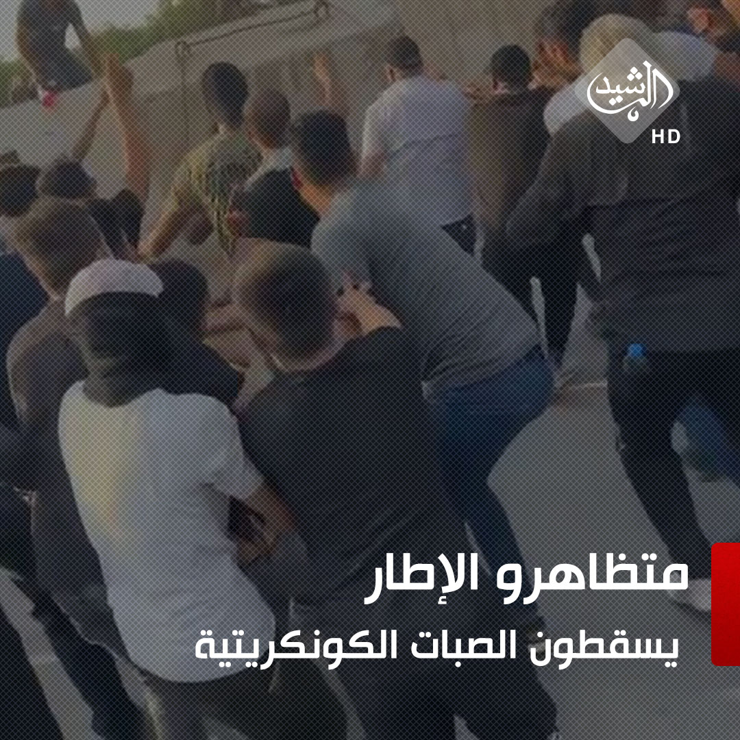 بالفيديو.. متظاهرو الإطار يسقطون "صبات كونكريتية" على الجسر المعلق