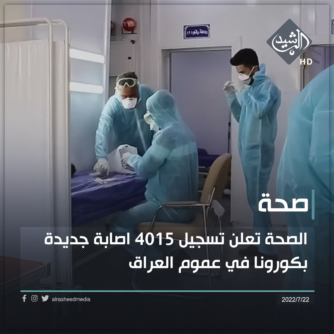 الصحة تعلن تسجيل 4015 اصابة جديدة بكورونا في عموم العراق