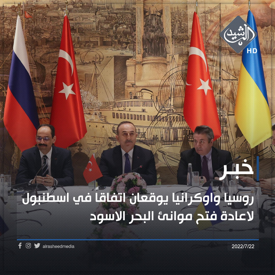 روسيا واوكرانيا يوقعان اتفاقاً في اسطنبول لاعادة فتح موانئ البحر الاسود