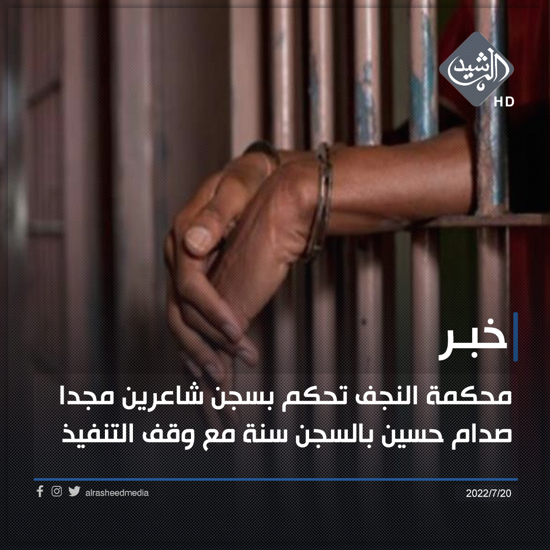 محكمة النجف تحكم بسجن شاعرين مجدا صدام حسين بالسجن سنة مع وقف التنفيذ