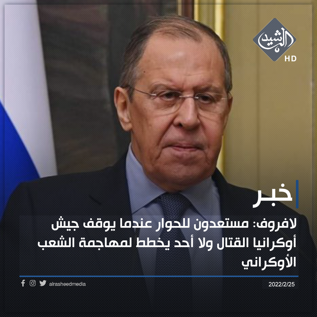 لافروف: مستعدون للحوار عندما يوقف جيش أوكرانيا القتال ولا أحد يخطط لمهاجمة الشعب الأوكراني