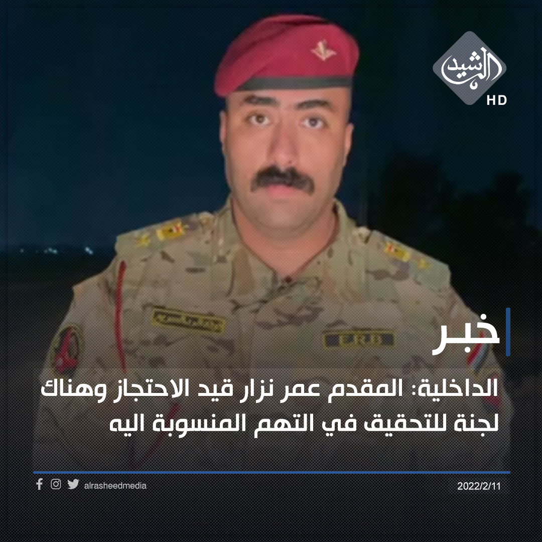 الداخلية: المقدم عمر نزار قيد الاحتجاز وهناك لجنة تحقيقية في الاتهامات المنسوبه إليه