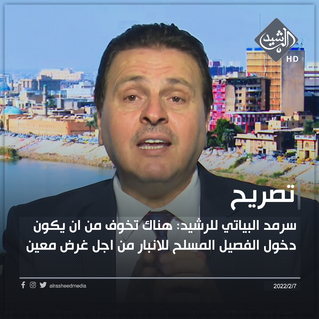 سرمد البياتي للرشيد: هناك تخوف من ان يكون دخول الفصيل المسلح للانبار من اجل غرض معين