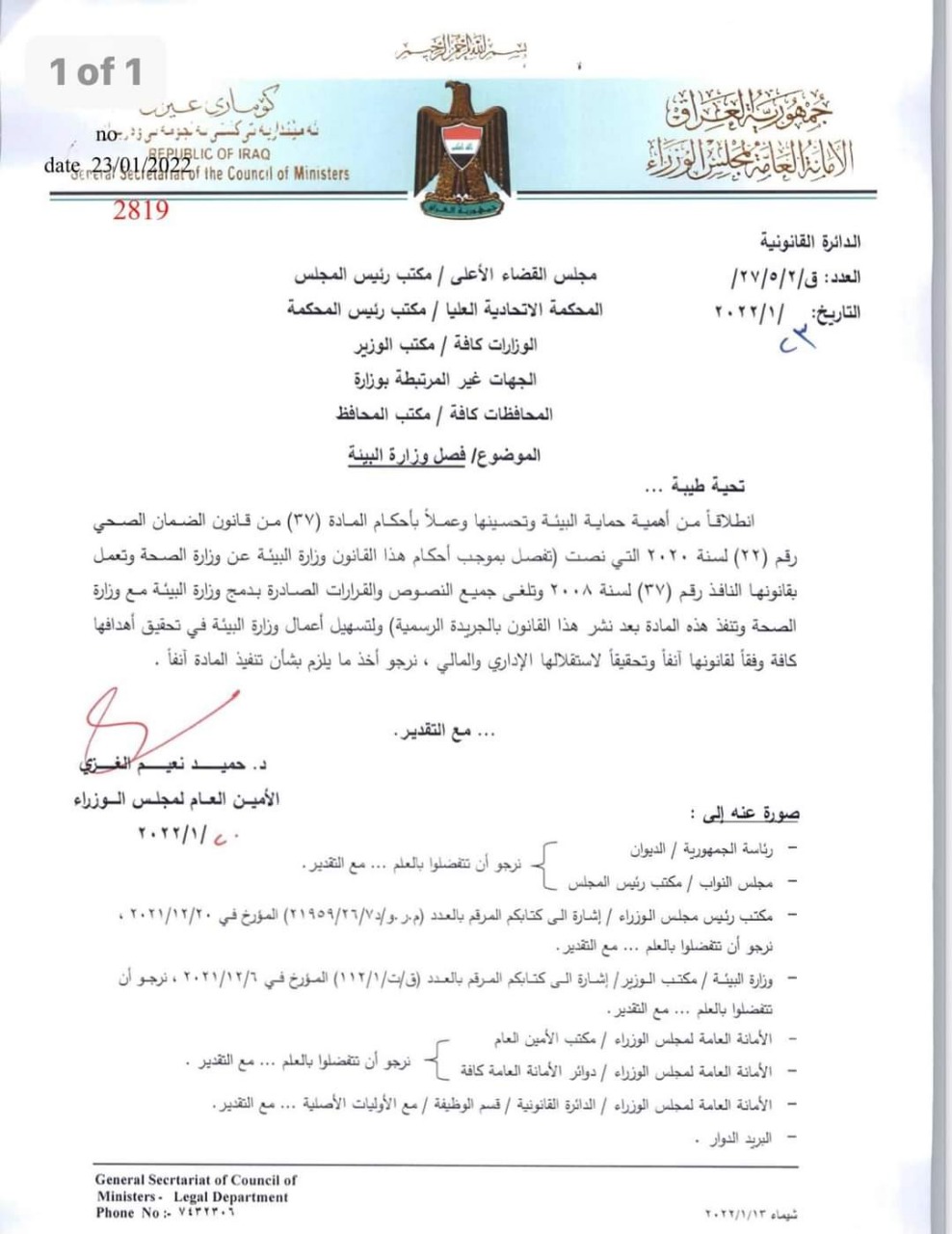 بالوثيقة.. مجلس الوزراء يفصل البيئة عن وزارة الصحة
