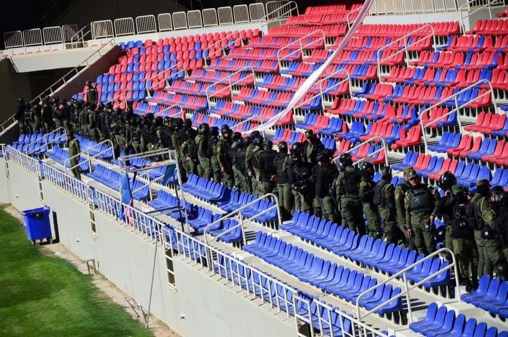 بالصور.. انتشار امني مكثف لتأمين مباراة نفط الوسط واربيل في ملعب النجف