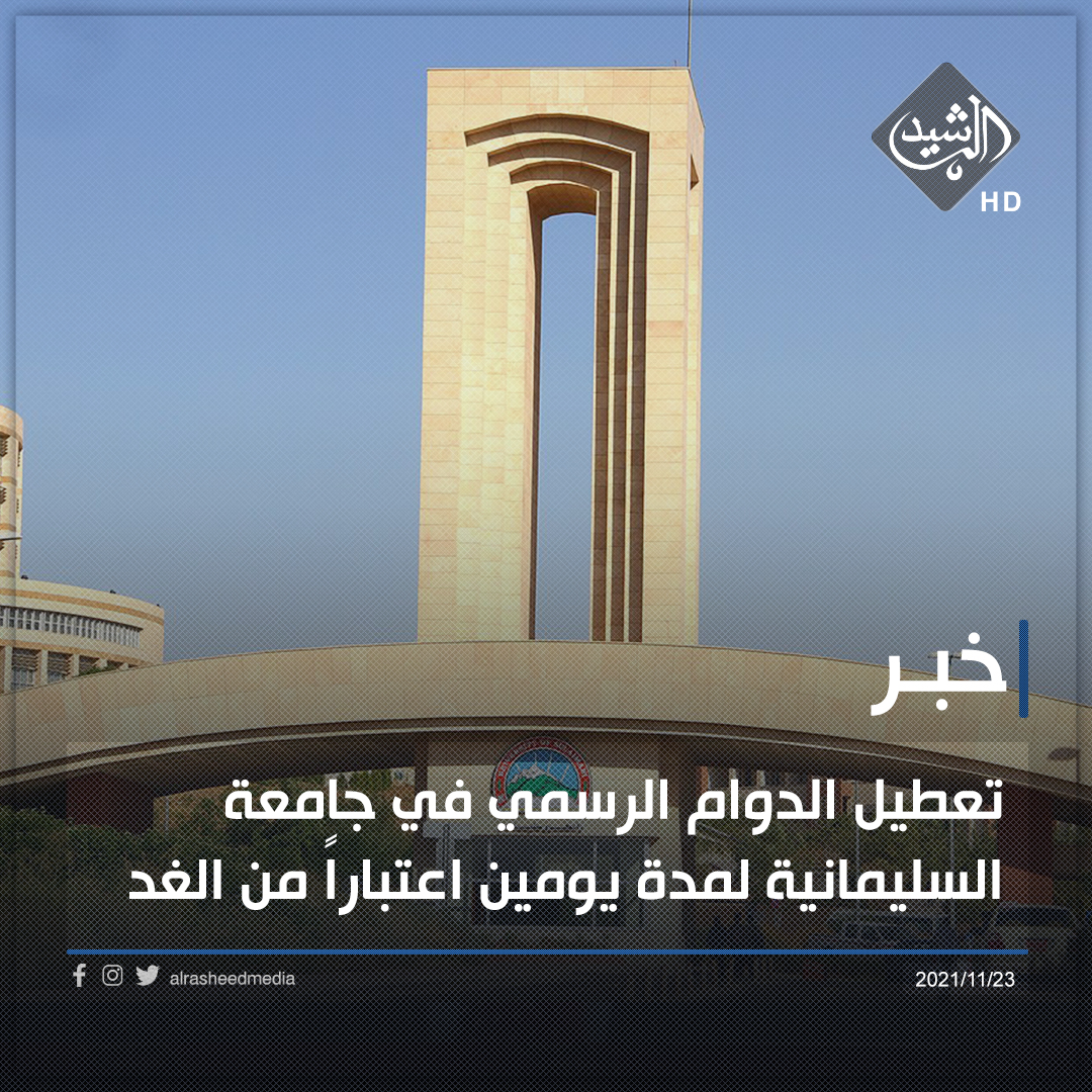 تعطيل الدوام الرسمي في جامعة السليمانية لمدة يومين اعتباراً من الغد
