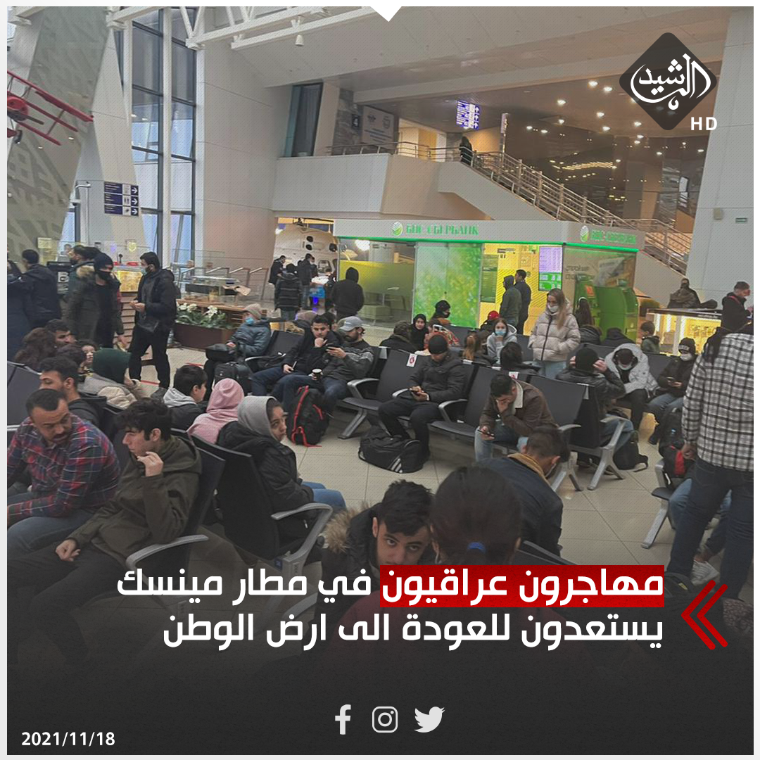 بالصور.. مهاجرون عراقيون في مطار مينسك يستعدون للعودة الى ارض الوطن