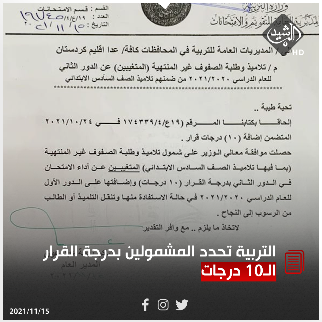 بالوثيقة.. التربية تحدد المشمولين بدرجة القرار الـ10 درجات