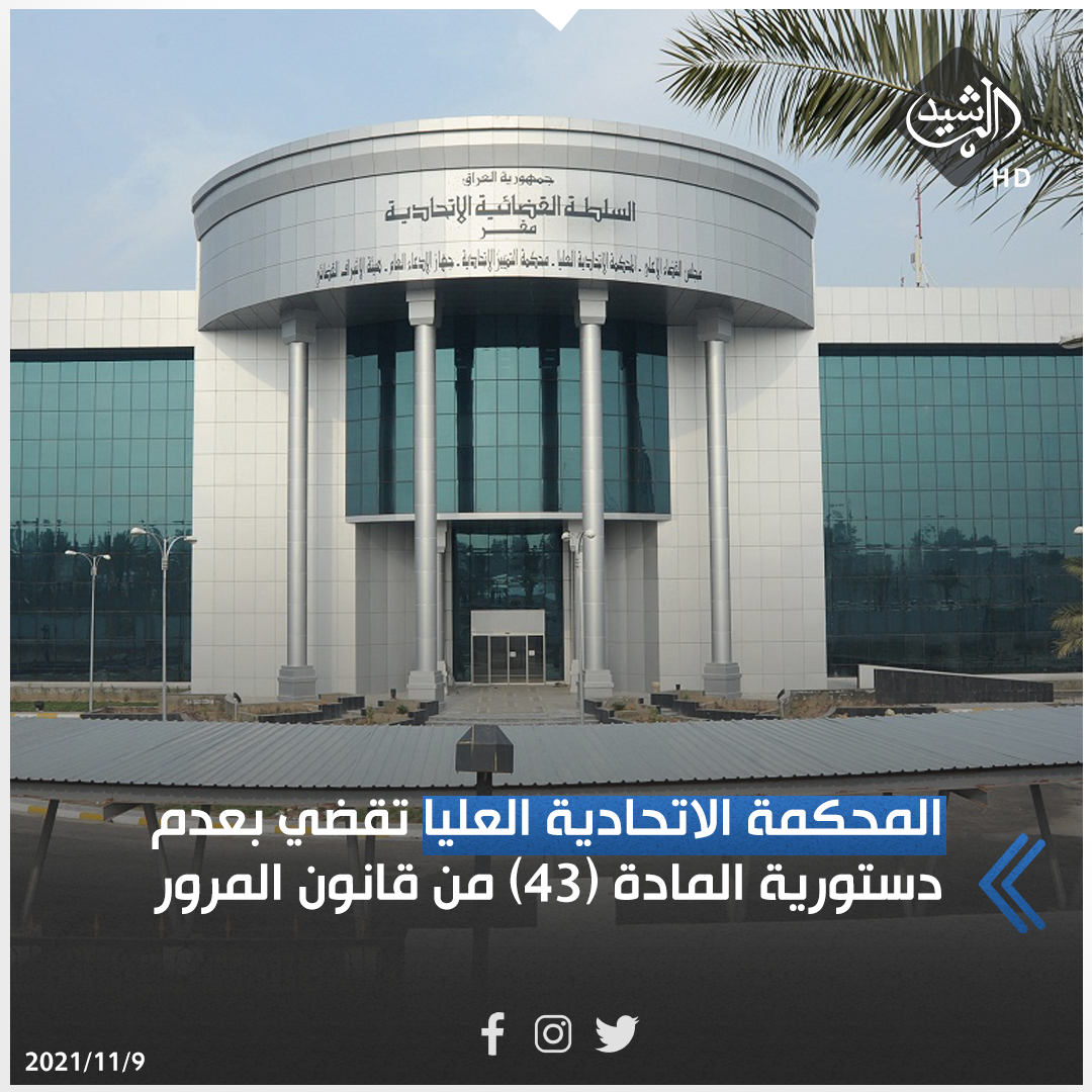 المحكمة الاتحادية العليا تقضي بعدم دستورية المادة (43) من قانون المرور