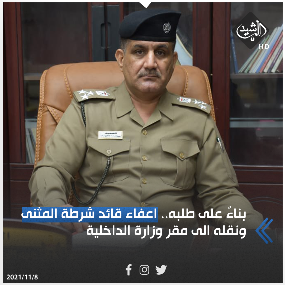 بناءً على طلبه.. اعفاء قائد شرطة المثنى ونقله الى مقر وزارة الداخلية