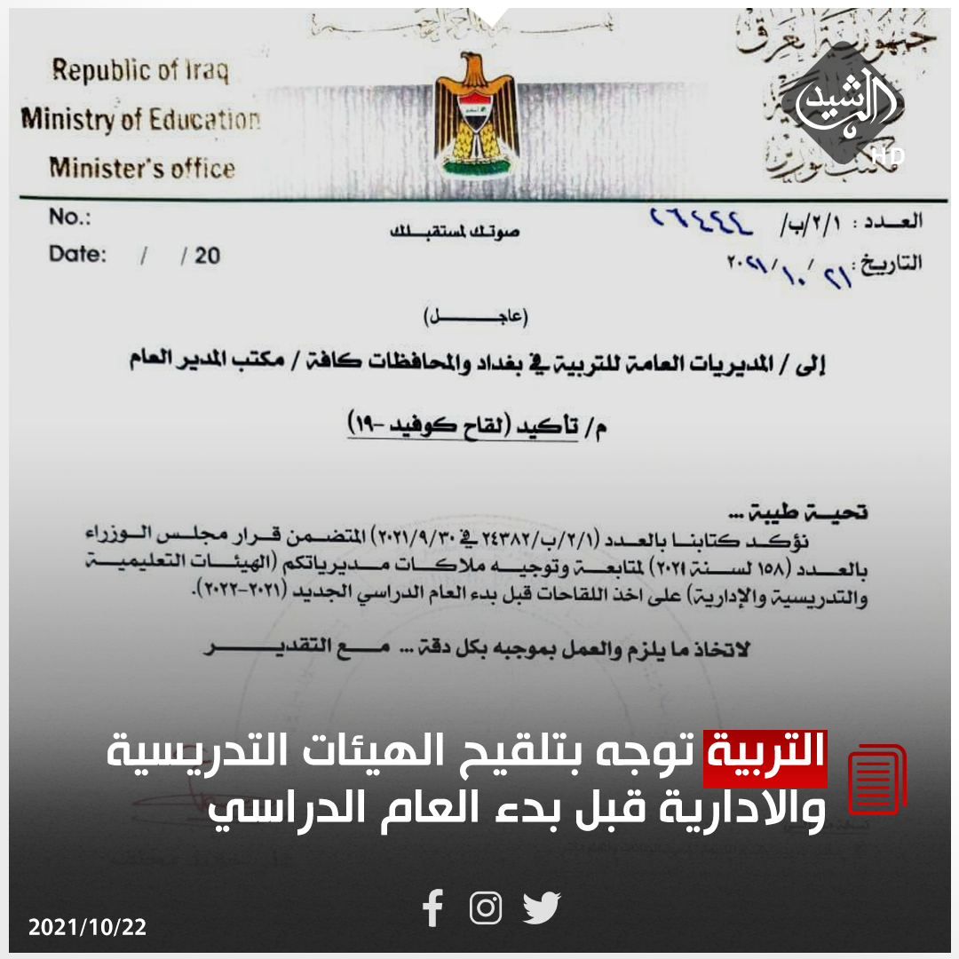 بالوثيقة.. التربية توجه بتلقيح الهيئات التدريسية والادارية قبل بدء العام الدراسي