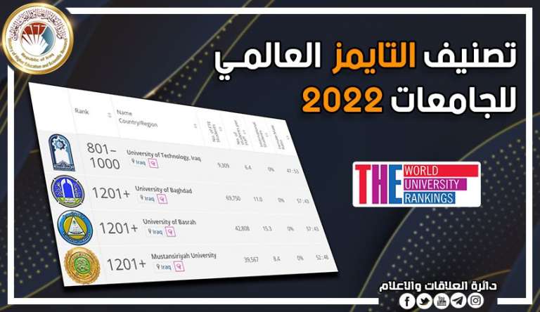 جامعات بغداد والتكنولوجية والمستنصرية والبصرة تحقق مراكز متقدمة في تصنيف التايمز