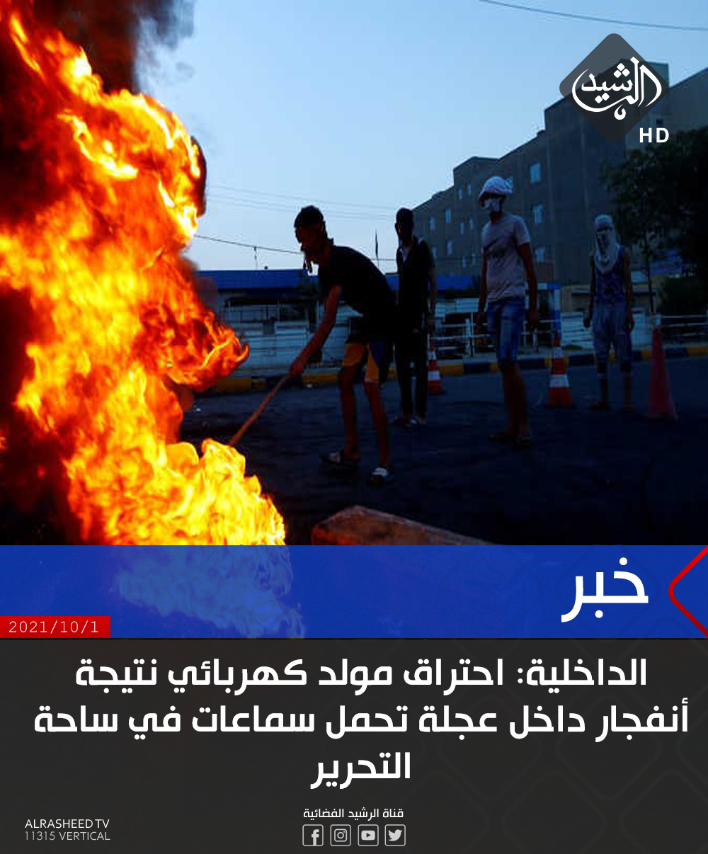 الداخلية: احتراق مولد كهربائي نتيجة أنفجار داخل عجلة تحمل سماعات في ساحة التحرير