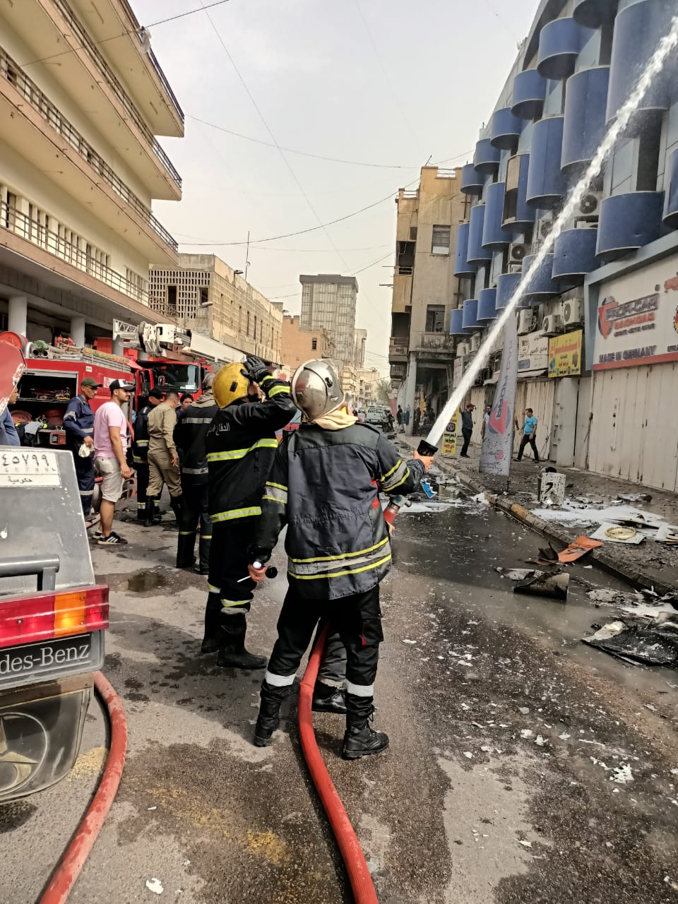 الدفاع المدني يخمد حريق مبنى دائرة التعويضات وسط بغداد