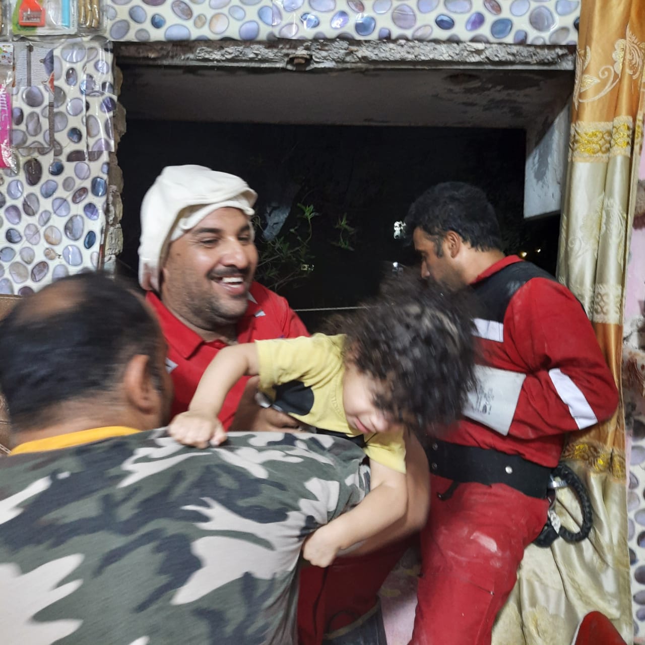 بالصور .. الدفاع المدني ينقذ عائلتين بعد انهيار سلم بناية سكنية في ميسان