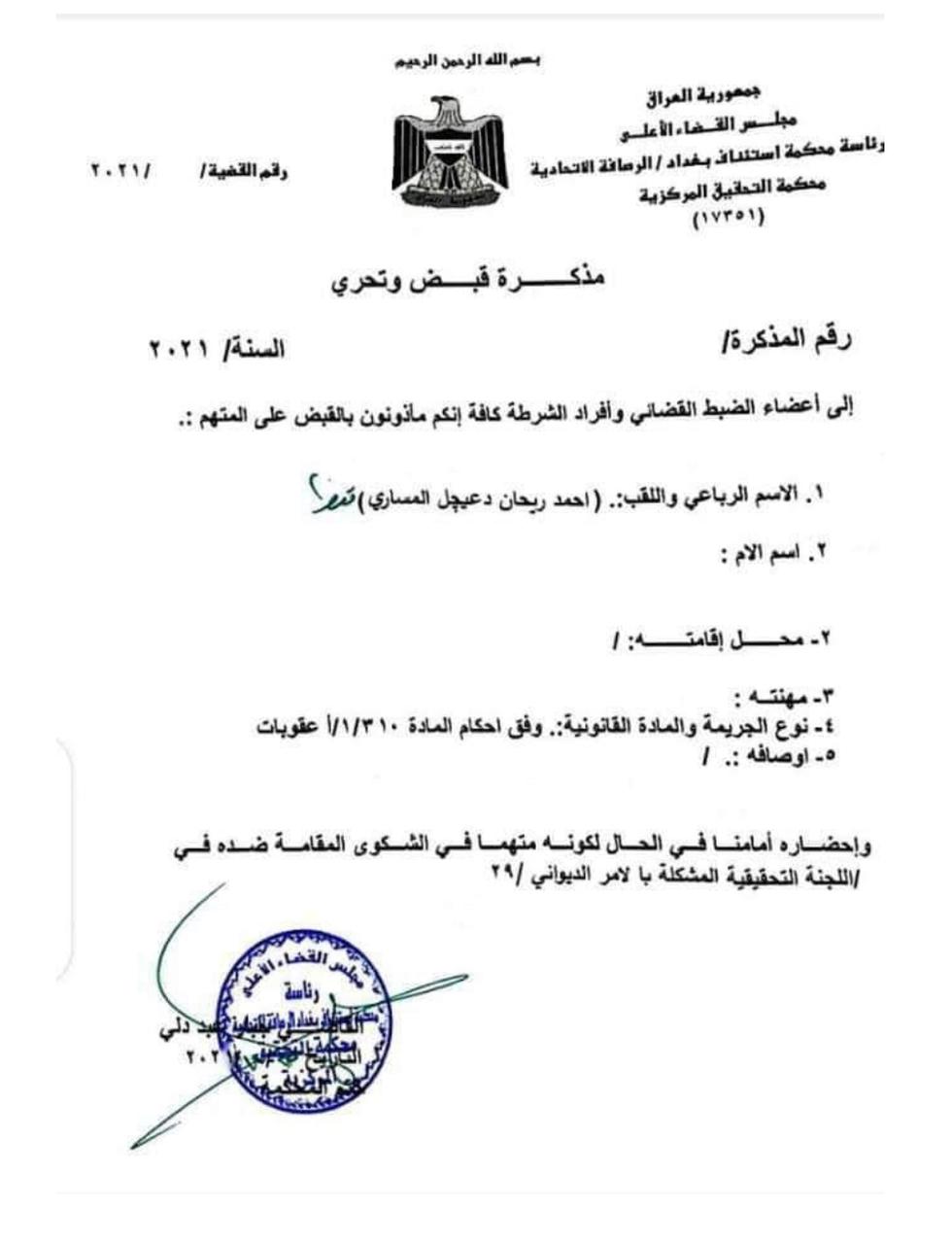 بالوثيقة .. اصدار مذكرة قبض بحق مدير عام في وزارة الصناعة بتهمة الفساد