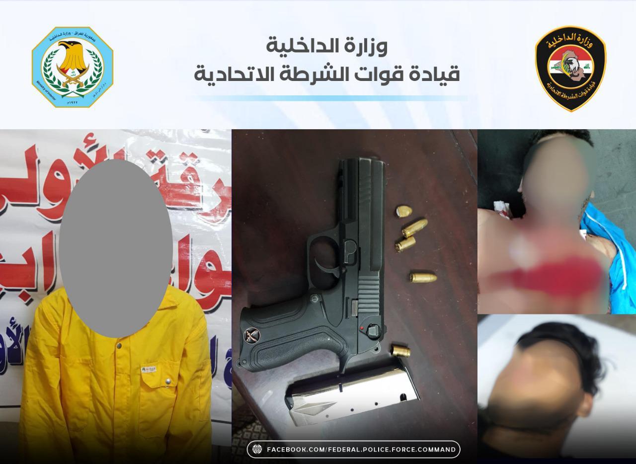 الشرطة الاتحادية تلقي القبض على متهم قتل والده وإصابة أخيه بعيارات نارية شرقي بغداد