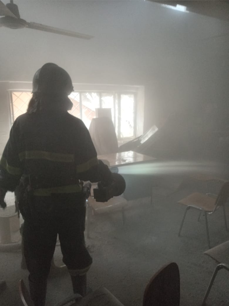 فرق الدفاع المدني تخمد حريقاً داخل قاعة دراسية في كلية شمالي بغداد