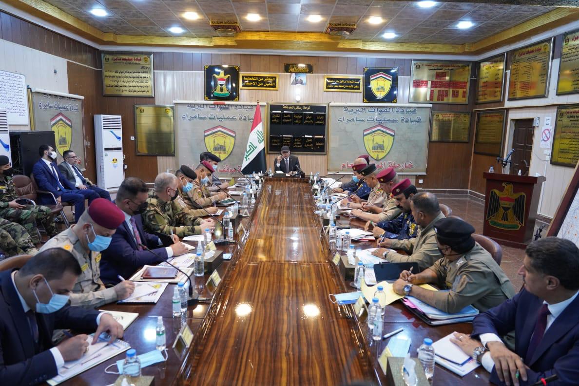 الكاظمي يعقد اجتماعاً بالقيادات العسكرية والأمنية في مقر عمليات سامراء