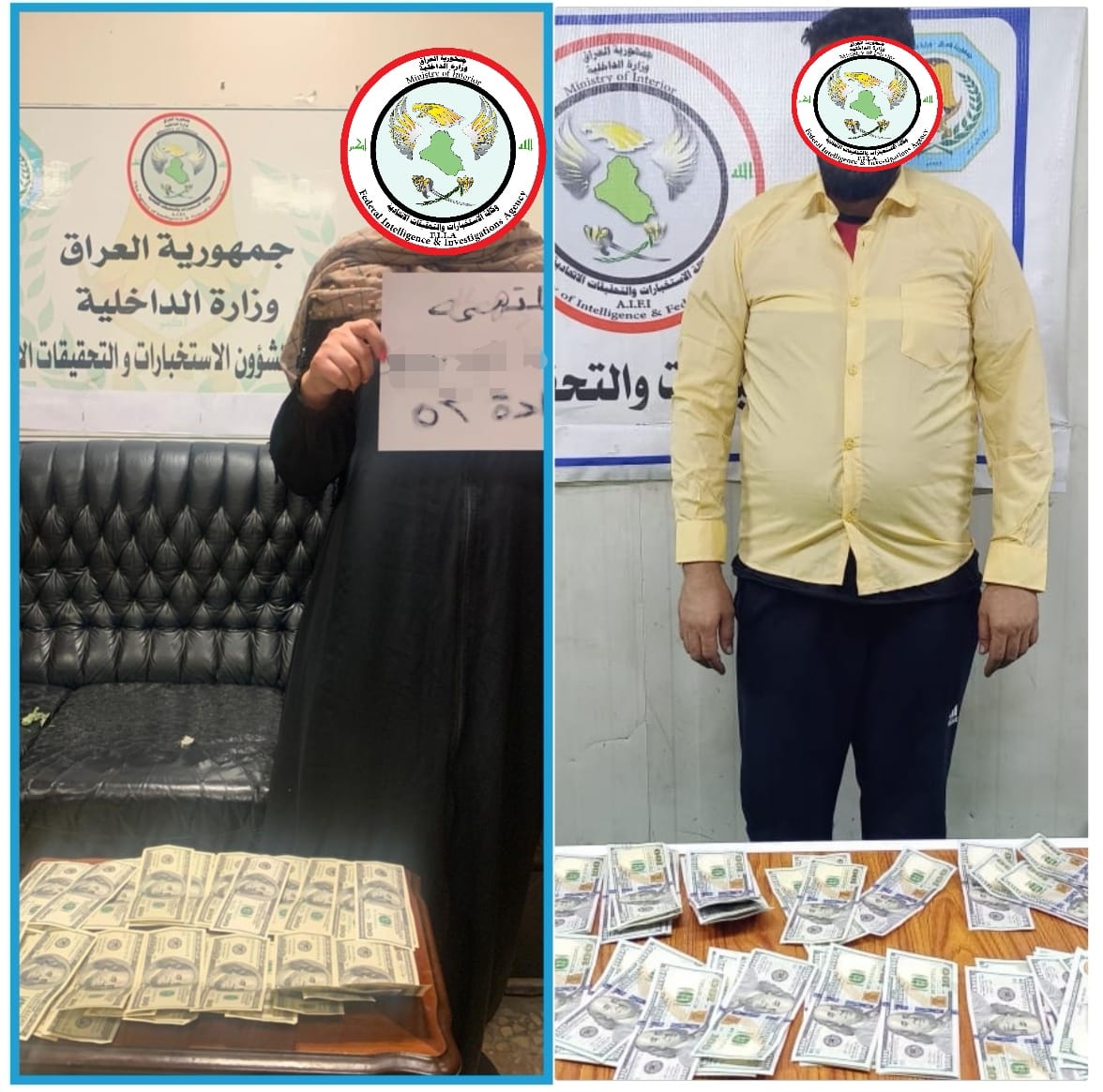 وكالة الاستخبارات تقبض على عصابة بينهم أمرأة يقومون ببيع العملة المزيفة في بغداد والنجف