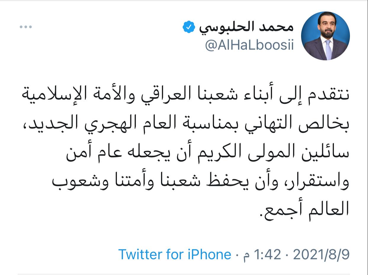 الحلبوسي يهنئ بحلول العام الهجري الجديد