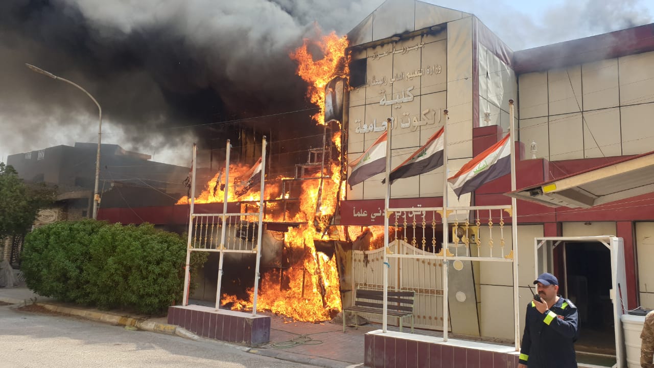 الدفاع المدني يخمد حريق كلية الكوت الجامعة في واسط