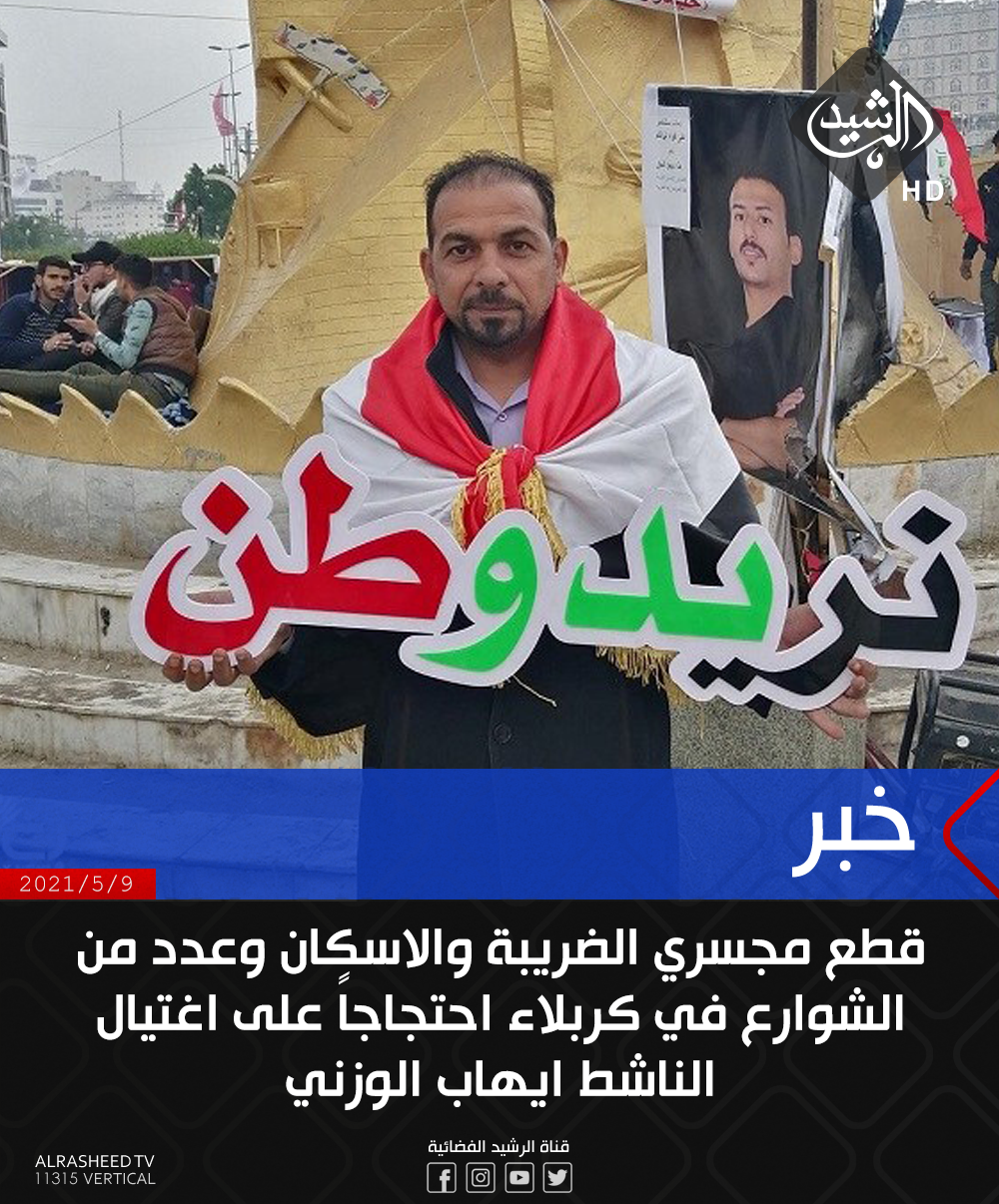 قطع مجسري الضريبة والاسكان وعدد من الشوارع في كربلاء احتجاجاً على اغتيال الناشط ايهاب الوزني