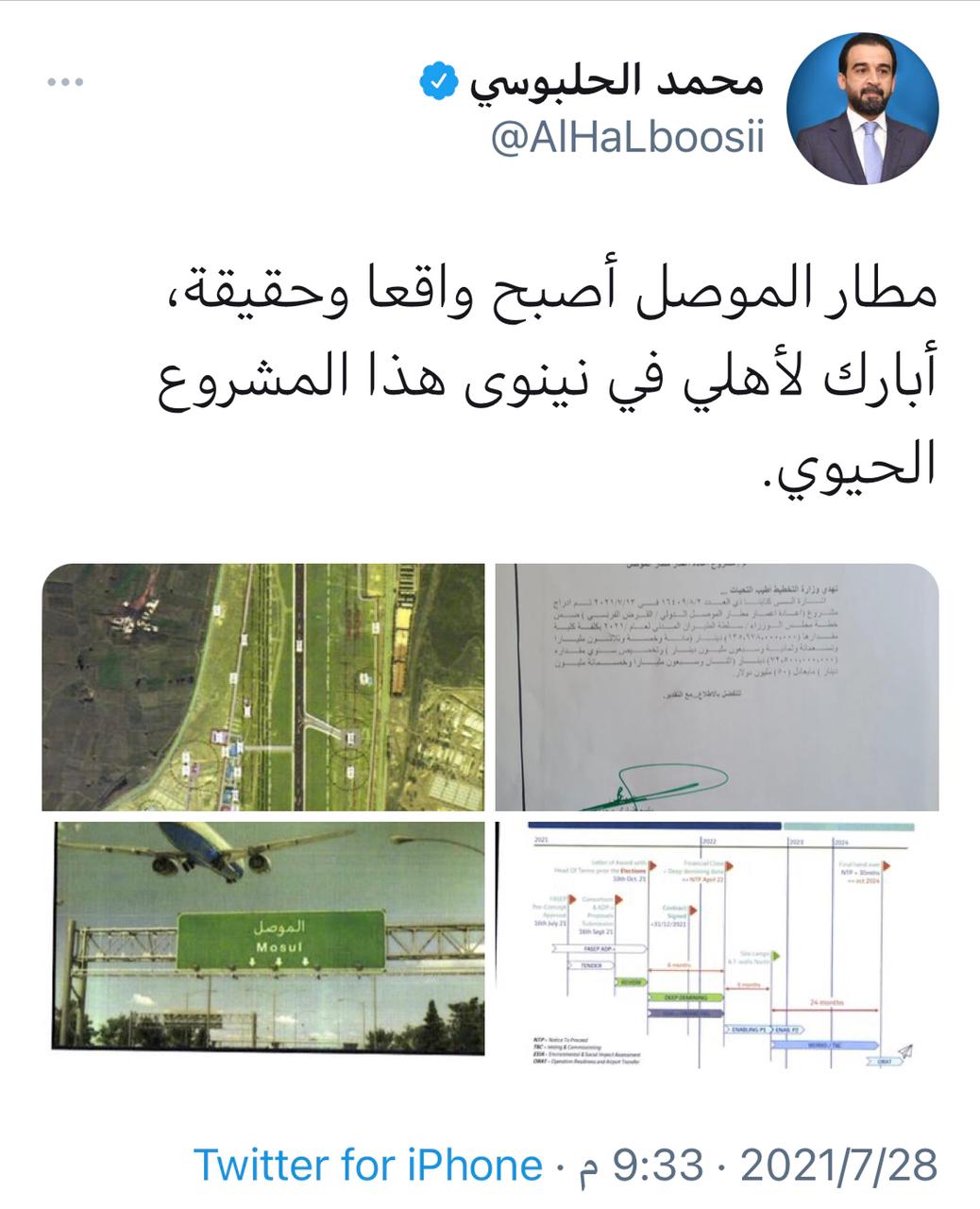 الحلبوسي: مطار الموصل أصبح واقعاً وحقيقة