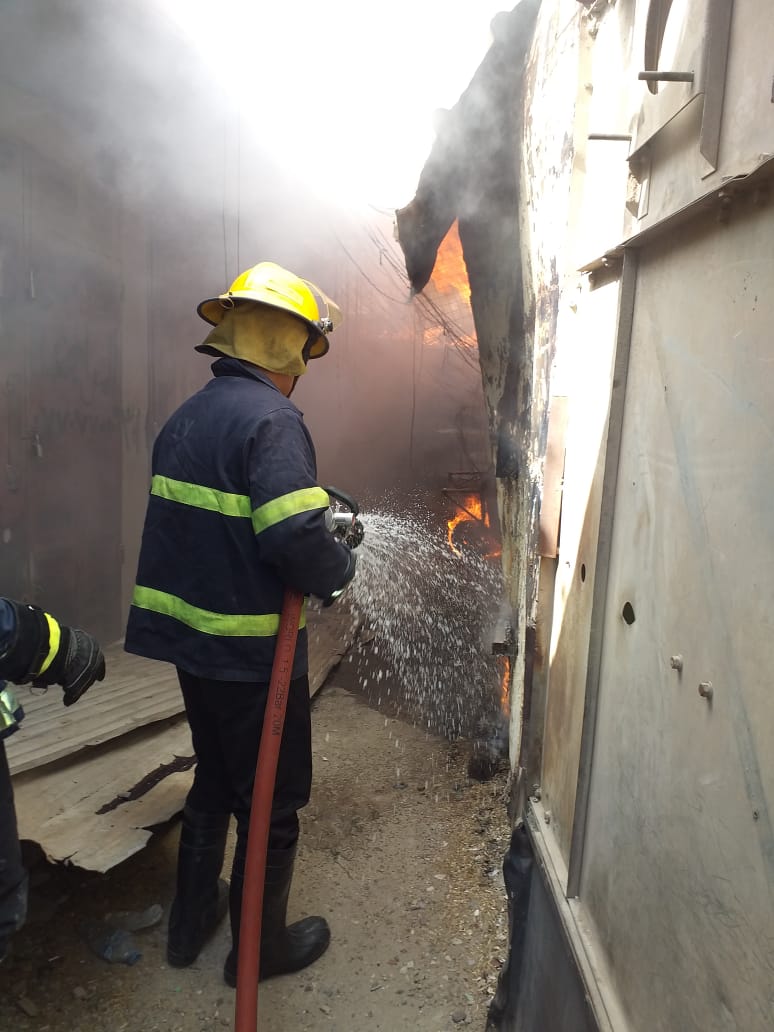 بالصور .. اخماد حريق اندلع داخل سوق شعبي شرقي بغداد