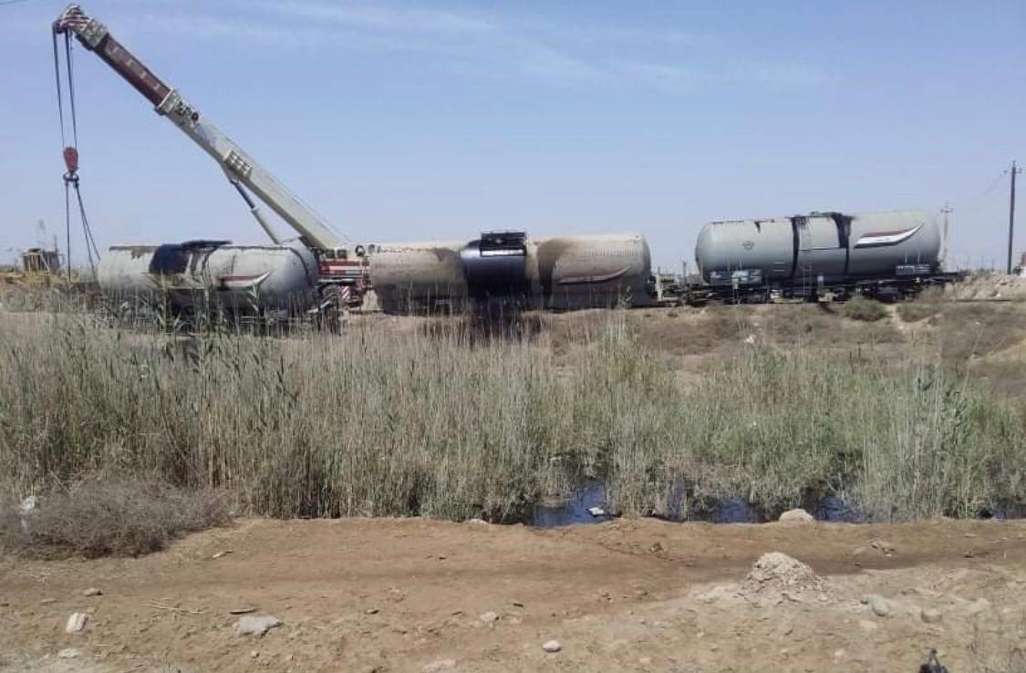 بالصور .. انقلاب قطار يحمل مادة النفط الاسود في منطقة النباعي شمالي بغداد
