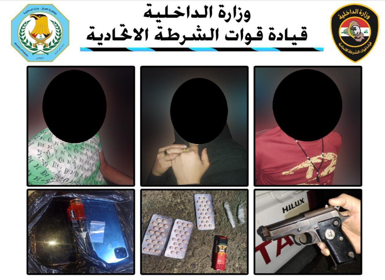 الشرطة الاتحادية تلقي القبض على متهمين بينهم امرأة بمتاجرة وتعاطي المواد المخدرة ببغداد