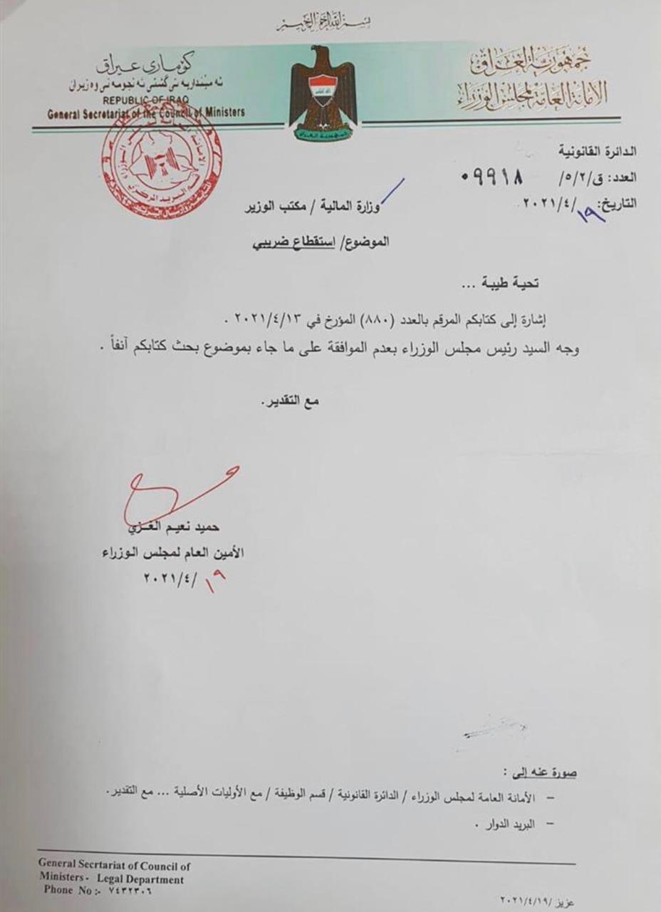 بالوثيقة .. نص قرار الكاظمي بايقاف كتاب المالية الخاص بالاستقطاع الضريبي من رواتب الموظفين