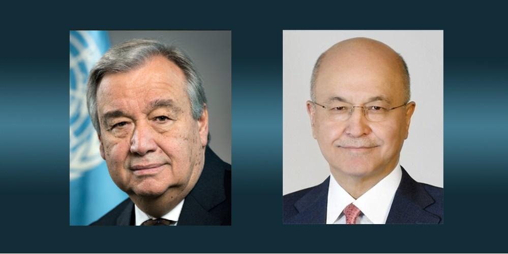 رئيس الجمهورية يبحث مع الامين العام للامم المتحدة الأوضاع في العراق والمنطقة