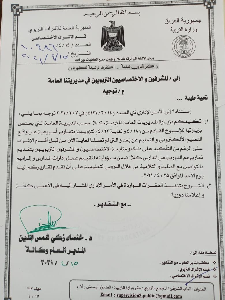 بالوثيقة .. التربية توعز لجهاز الاشراف الاختصاصي والتربوي بمتابعة التعليم الالكتروني