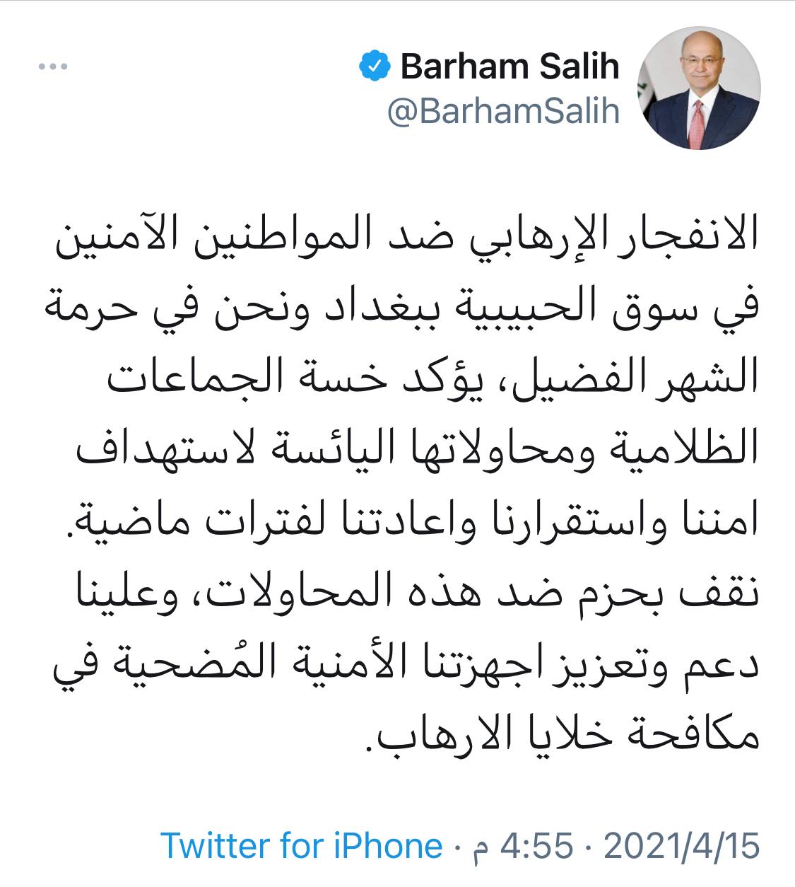 رئيس الجمهورية: الانفجار الارهابي بسوق الحبيبية يؤكد خسة الجماعات الظلامية