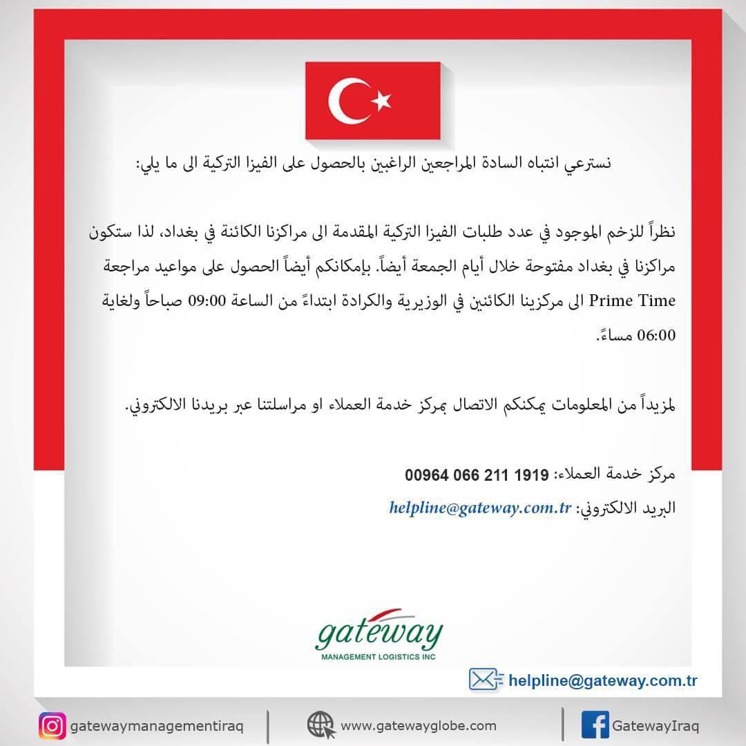 السفارة التركية في بغداد تصدر بياناً بشأن منح الفيزا للعراقيين