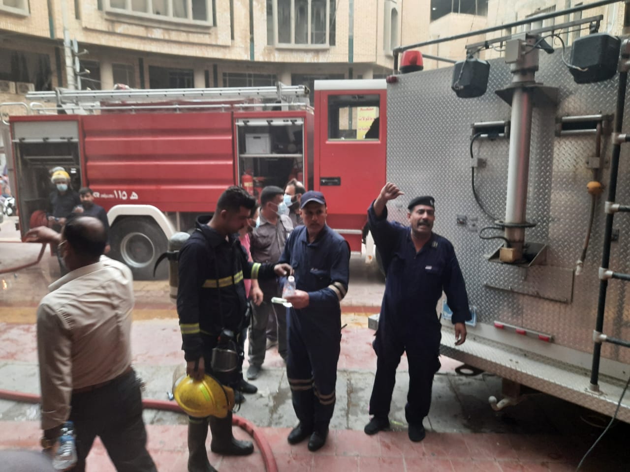 بالصور .. الدفاع المدني يخمد حريقاً داخل فندق في شارع الصادق بالنجف