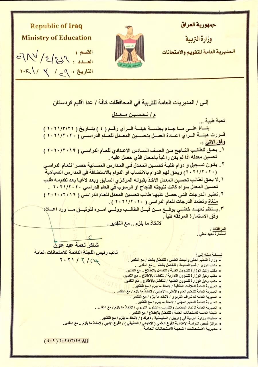 التربية تصدر التعليمات الخاصة بتحسين المعدل