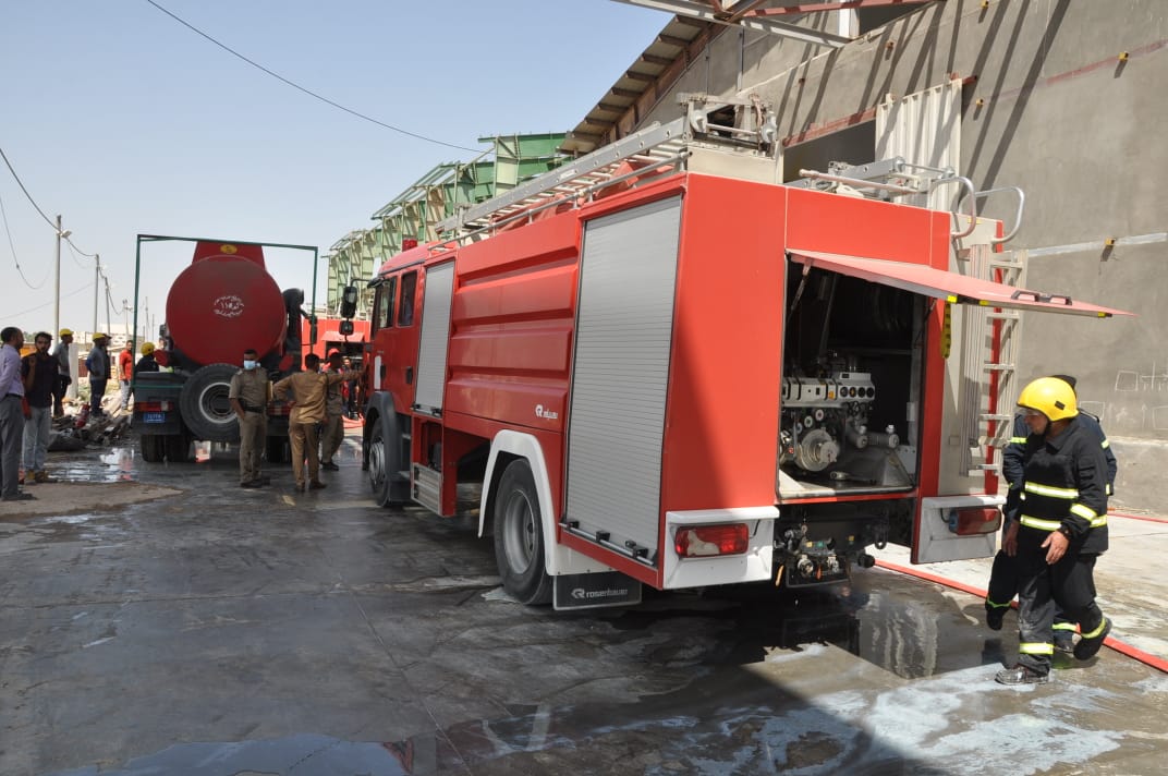 فرق الدفاع المدني تسيطر على حادث حريق اندلع داخل معمل للالبان في كربلاء