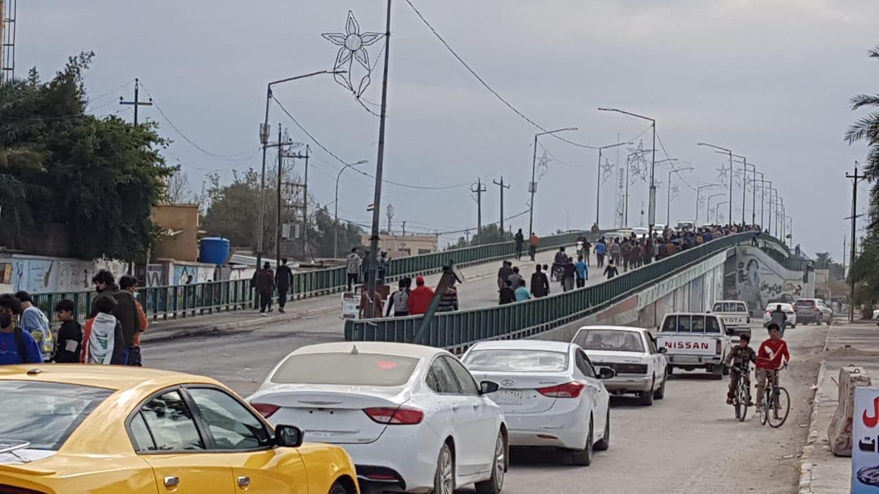 اندلاع اشتباكات بين متظاهرين والقوات الامنية في الناصرية وقطع جسر النصر وسط المدينة