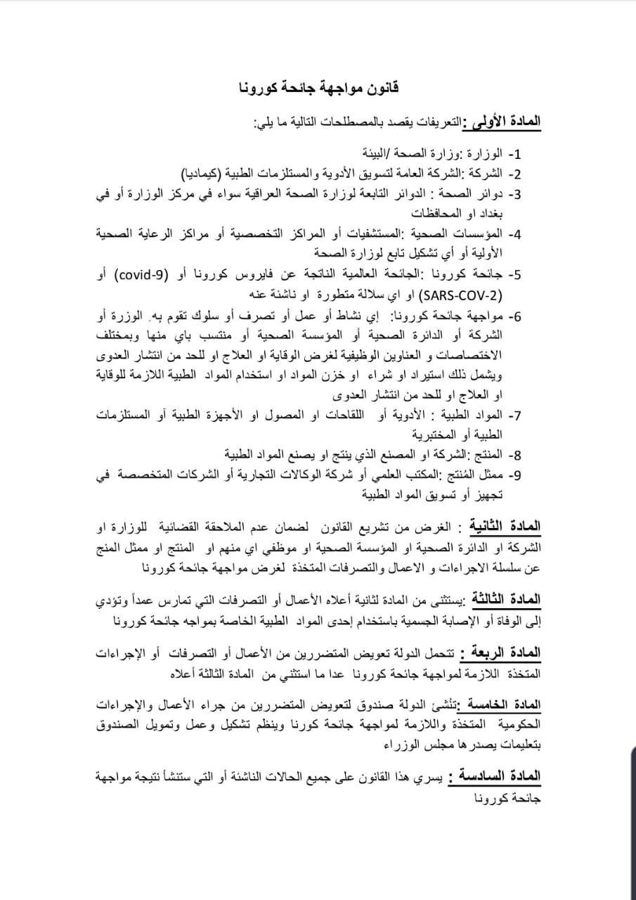 خلية الازمة النيابية تعلن وصول مسودة قانون مواجهة جائحة كورونا الى البرلمان