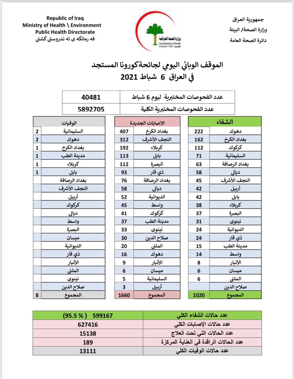 الصحة تعلن تسجيل 8 وفيات بكورونا و 1020 حالة شفاء من الفيروس