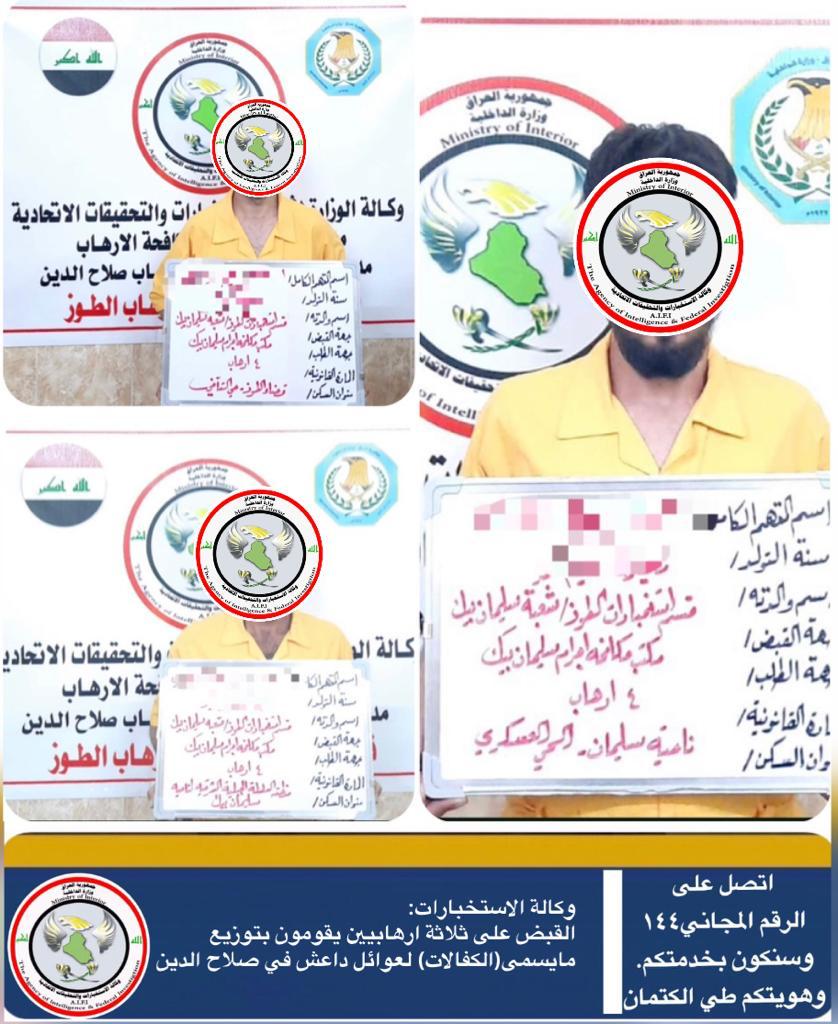 وكالة الاستخبارات: القبض على 3 ارهابيين يوزعون الكفالات لعوائل داعش في صلاح الدين